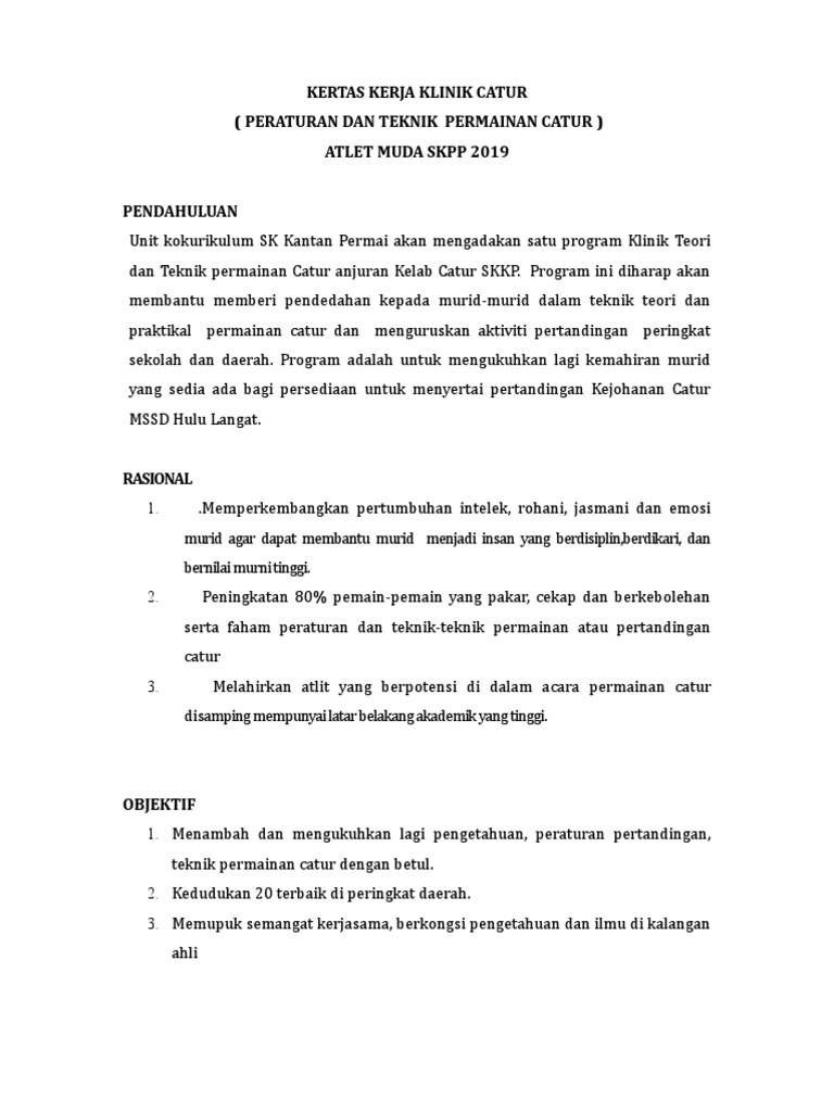 Contoh Kertas Kerja Bengkel Catur